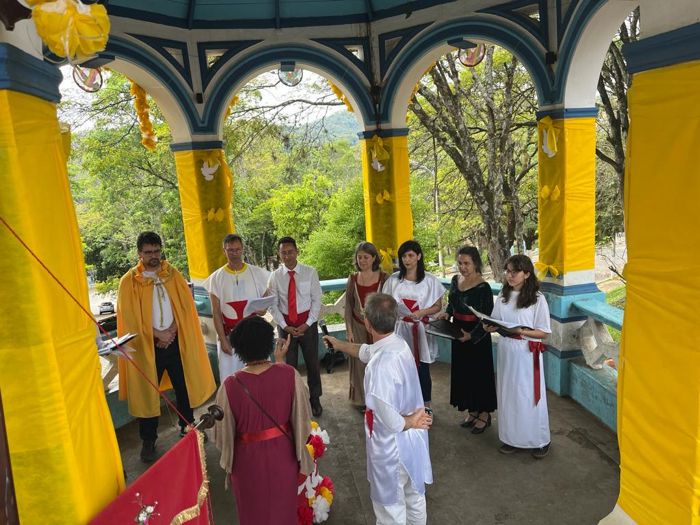 Na 18ª Festa do Divino de Cambuquira, realizada em 9 de outubro de 2022, contamos com o envolvimento dos alunos da Graduação de Artes Visuais da FATRI, com a colaboração da Prefeitura e da Secretaria da Cultura de Cambuquira, e de voluntários de São Paulo, Cambuquira e Portugal (Lisboa) nos preparativos, além da participação, no próprio dia da Festa, de alunos das Faculdades Trilógicas provenientes de diversas cidades e estados do Brasil, como: Monte Verde, Curitiba, Belém do Pará, Vitória do Espírito Santo, Lorena, Rio de Janeiro e São Paulo.